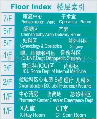 医院楼层索引标识牌