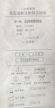 一次性使用高压造影注射器及附件