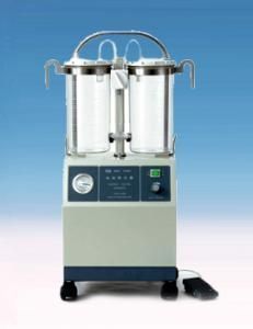是一种结构新颖、移动式、超大流量的医用吸引装置。可在数秒内迅速建立起所需要的负压,适合于快速吸出大量体液的场合。安全可靠的控制系统、人性化的结构设计和组合,是各医疗单位的理想选择。高负压吸引器性能特点:1、采用无油自润滑双缸活塞泵为负压源,免维护保养;抽气速率可达80 L min以上,负压上升极快;2、吸引时所需要的负压可由负压调节阀控制并由真空表来显示;3、反应灵敏、可靠的溢流保护装置可防止液体进入中间管道;新型的空气过滤器可有效清除空气中的污染物;4、透明的、高强度聚碳酸酯塑料广口瓶,容量大,易清洗,可高温杀菌;5、容器转换阀可用于操作过程中快速选择空容器;悬挂式清洁杯可供手术前后放置吸引管;6、流线型不锈钢推手柄,推拉自如;设备后部开有储物箱,可放置脚踏开关及电源线等,移动或贮存时更方便。高负压吸引器主要技术参数: