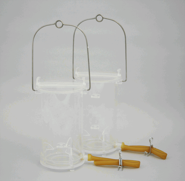 有机玻璃采水器:由桶体、带轴的两个半圆上盖和活动底板等组成。内部可放置温度计,采样后可直接读温度。具有采样准确、使用方便、便于观察、操作方便等特点。使用时注意先夹住出水口橡皮管,再将两个半圆形上盖打开。让采水器沉入水中,底部入水口则自动开启。可采集不同深度层的水样,上面系个绳子,下面进水,上面出水,采水器停在不同深度时,所采的水样,就是这个层次的水样。下沉深度应在系绳上有所标记,当沉入所需深度时,即上提系绳,上盖和下入水口自动关闭,提出水面后,不要碰及下底,以免水样泻漏。将出水口橡皮管伸入容器口,松开铁夹,水样即注入容器。
