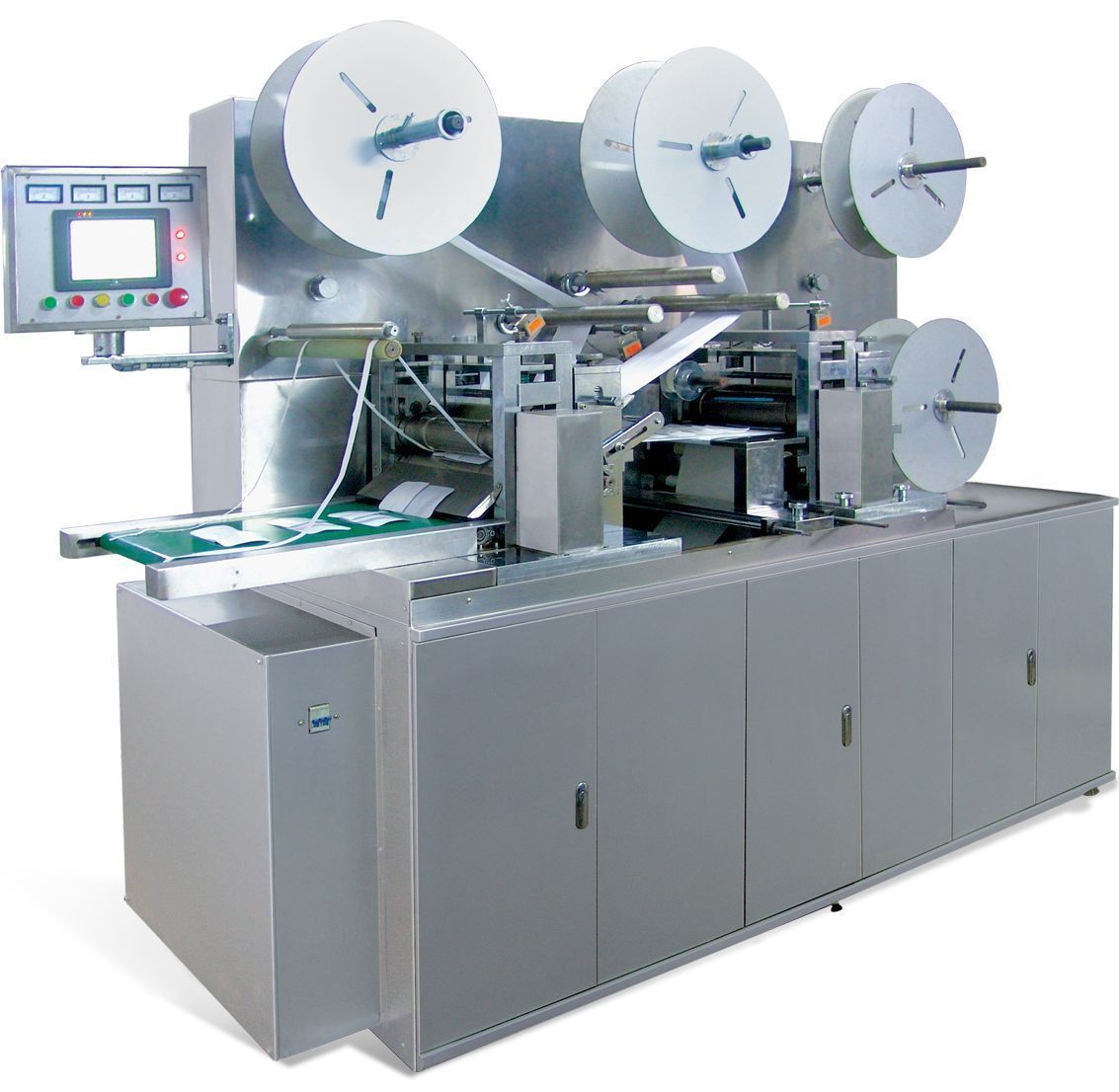 5、断料无料自动停机。 此设备是生产医用敷料的机器(滚刀式)速度较快!