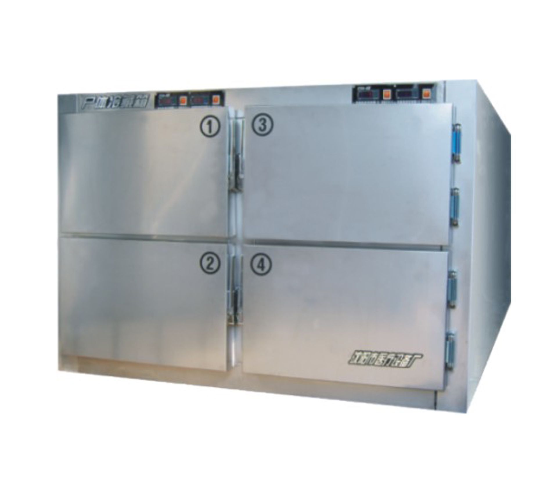 根据尸体冷藏箱存放尸体数量的多少,相应配备各自独立控制的多套进口低温制冷系统。独立电源插头。由各自数显温控电脑控温。冷藏冷冻温度根据用户需要自行设定。且各箱温度要求互不影响。