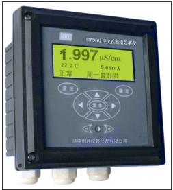 CON9603CON9604在线电导率仪CON9603CON9604是在保证性能的基础上简化了功能,从而具有了特别强的价格优势。清晰的显示、简易的操作和优良的测试性能使其具有很高的性价比。可广泛应用于火电、化工化肥、冶金、环保、制药、生化、食品和自来水等溶液中电导率值的连续监测。CON9603与CON9604的区别是供电电源不同。主要特点微机化: 采用高性能CPU芯片、高精度AD转换技术和SMT贴片技术完成多参数测量、温度补偿、量程自动转换,精度高,重复性好。高可靠性:触摸式按键,无开关旋钮和电位器。自动转换测量频率:避免电极极化,提高测量精度。相敏检波设计:消除导线对测量的影响。25℃折算:温度补偿自动测量手动输入。报警功能:报警信号隔离输出,报警上、下限可任意设定,报警滞后撤消。工业控制式看门狗:确保仪表不会死机。网络功能:隔离的电流输出和RS485通讯接口。隔离电流输出:电流对应电导率值的输出上、下限可任意设定。技术指标显示方式:LED(数码管)显示、高亮度,醒目直观,可视距离远测量范围:电极常数×(1~2000)μScm, 0~99.9℃0.01~30μS cm (配0.01电极); 0.1~300μScm (配0.1电极); 11.0~3000μScm (配1.0 电极); 210~30000μScm (配10.0电极); 分辨率:0.001μScm、0.1℃电极常数:0.001~15.0 cm-1间由软件设定温补范围:自动0~99.9℃,手动0~99.9℃,25℃折算精 度:±1.0%FS,±0.3℃电流隔离输出: 4~20 mA(负载< 750 Ω)。报警继电器:AC220V、3A,报警信号隔离输出通讯接口:隔离RS485电 源:CON9603: AC220V, 50Hz±1Hz CON9604: DC24V 防护等级:IP65工作条件:环境温度0~60℃ ,相对湿度≤90℅掉电保存:>10年重量、尺寸: 0.8kg 、96×96×110 mm开孔尺寸:92x92mm;二次表安装方式:开孔式电极安装方式:流通式沉入式法兰式管道式标准配置二次表一台,测量池一套,电极一支