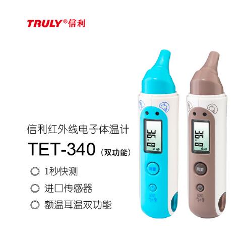 一、信利红外线耳温计额温优势: ??1、信利红外线耳温计是非接触式的红外线电子体温计,是通过红外线测量,通过红外线照射到额头表面反射回来的情况与光谱温度对应表对照,从而得出准确的温度值。 ??2、信利红外线耳温计是大屏幕背光清晰显示,可调整设置参数,存储32个测量数据,高温报警方便安全。 ??3、信利红外线耳温计使用起来非常简单,只需要朝着额头一照,几秒钟便能读出受测者体温,而且结果相当准确,它采用电子屏的方式显示温度,只要认识阿拉伯数字,都能轻松读取体温。 ??4、红外线耳温计对于婴幼儿、重症病人等操作起来,与其他体温计相比非常方便,被医院广泛采用,当然也受到家庭的喜欢。 ??二、使用红外线耳温计注意事项: ??(1)、枪头越深越好,但不要造成不舒服。 ??(2)、测量儿童时好将耳朵往上方拉(将耳道拉直)。 ??(3)、好两耳均测,甚至单独一耳测三次,取高值(因为两边可能有0.1-0.3的误差)。 ??(4)、刚刚才晒过太阳过久或运动,要避免测量,否则测量值较实际温度高。 ??温馨提示:人的体表温度与环境温度关联很大. 信利红外线耳温计额温,一家专业的耳温计厂家,在国内建有符合GMP认证的标准厂房,产品已通过多项极具权威的质量标准和医疗器械专业标准的国际认证等,严格按照规章流程,生产出来的红外线耳温计能够有效的测出体温,相比其他厂家的产品,更有其有测量时间短、非接触的优势,特别适合睡眠中的婴幼儿,解决任何群体的测体温需求。 总结,现在红外耳温计测量体温还是很方便的,只要将探头放在内耳道,1秒钟就可以测量出体温数据,测量的体温非常可靠. 产品名称:信利红外线电子体温计TET-340