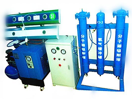 医用制氧机以变压吸附(PSA) 技术为基础,从空气中提取氧气的新型设备,其利用分子筛物理吸附和解吸技术在制氧机内装填分子筛,在加压时可将空气中氮气吸附,剩余的未被吸收的氧气被收集起来,经过净化处理后即成为高纯度的氧气。具体工作过程为压缩空气经空气纯化干燥机净化后,通过切换阀进入吸附塔。在吸附塔内,氮气被分子筛吸附,氧气在吸附塔顶部被聚积后进入氧气储罐,再经除异味、除尘过滤器和除菌过滤器过滤即获得合格的医用氧气。主要的组成配件有:空气罐,空压机,冷干机,制氧主机,氧气罐等。YZNY-30主要适用于卫生院,乡镇级医院,制氧成本低,可快速回收成本。