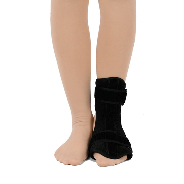 产品作用:采用OK布,里子面料,SBR发泡橡胶由环保胶水复合而成,两侧有高强度铝合金型材做支撑,根据人体而设计的弧度,呈立体形状,且内壁具有缓冲层,可减轻对踝骨的冲击力,增强穿用时的舒适度。本品和其他产品区别是两侧铝合金板放在魔术贴里面,魔术贴可根据穿戴者脚踝不同位置随意安放。前开口式,穿戴时先将小粘扣粘好,再将两片粘扣(里面装有成型铝合金板)放在踝部两侧,粘扣固定好。