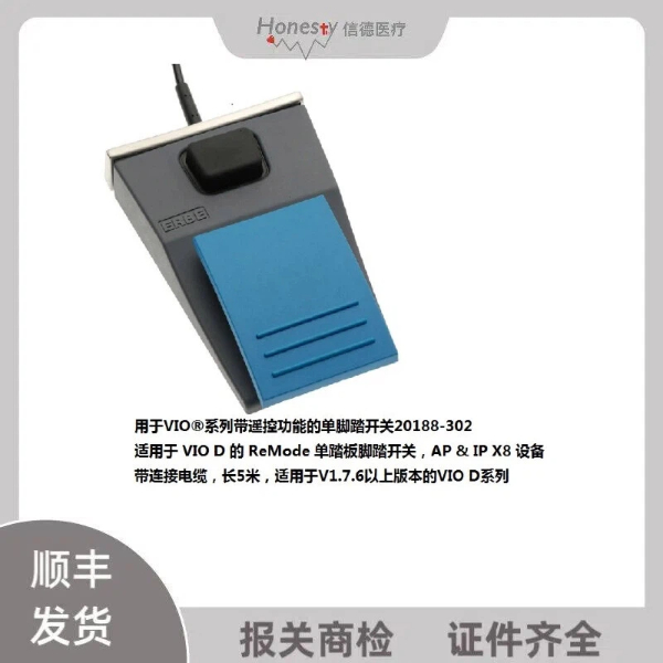 用于VIO?系列带遥控功能的单脚踏开关20188-302适用于 VIO D 的 ReMode 单踏板脚踏开关,AP & IP X8 设备带连接电缆,长5米,适用于V1.7.6以上版本的VIO D系列