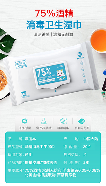 更多 澳丽本酒精消毒湿巾80片装 产品和厂家