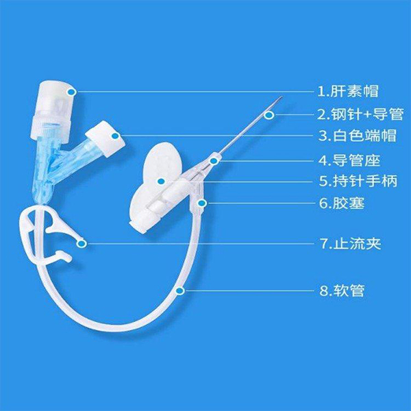 产品名称:一次性使用静脉留置针 产品规格:Y型,18G、20G、22G、24G、26G 医疗器械产品注册证证号:国械注准20183140380 生产企业许可证号:鲁食药监械生产许20140053号 适用范围: 本产品供插入人体外周血管静脉系统连续输液用。 主要结构与性能:Y型留置针主要由不锈钢针管、导管(套管)、金属楔、导管座(Y型)、隔离塞、针管座、长导管(连接管)、长导管连接座、肝素帽、 螺旋帽、滑动夹紧板、针管保护套组成。 产品特点: 1.导管柔软,不易损伤血管**输液时的** ;2.避免每天穿刺血管,减轻痛苦,保护血管 ;3.使病人在输液时感觉更为舒适 ;4.提高工作效率 ;5.提高护理质量 适用范围::1.肿瘤科 2.儿科 3.神经内外科 4.普通病房 5.CT室 6.门急诊 预期用途:临床用于留置病人静脉进行输液 产品部件:蝶翼状、肝素帽、滑动夹紧板