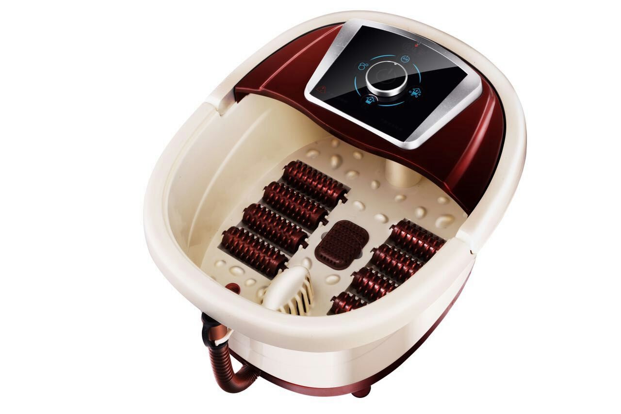 一、产品特点 1、外排水功能,一键启动。 2、气泡增氧,内置药盒。 3、提手保温盖,红光照射。 4、恒温设定,定时定温。 二、产品功能 1、热浪足浴中结合足底按摩,超长波理疗。 2、作用于足底的全息反射区,使人体经络通畅、全身排汗、加速气血循环。 3、气波增氧,增效功能,从而达到增强自身免疫力,自愈力和改善疾痛症状,加快康复的辅助效果。 三、使用方法 1、往足浴盆里面加水至水位线。 2、机器通电,将电源插入电源盒内机器发出“滴”的一声,就是待命状态。 3、电源开关开启之后可进行温度设定,按一次温度键温度加1°C。 4、连续按定时键选择您想要的足浴时间(一般时间为30-40分钟为佳)。 5、足浴定时完成时,该机会自动关闭所有的功能。 6、足浴完毕时,拔下电源线,放下排水管自动排水。 四、注意事项 1、在清洗该机器时,请拔下电源插头。 2、在任何时候本产品和遥控器禁止浸入水中。 3、器具表面发热,对热不敏感者,使用前必须注意,用手心皮肤接触感觉舒适再用。儿童和智障残疾人应在有人看管的情况使用;儿童和智障残疾人不得在 足浴器上游戏和踩踏。 4、不要站立使用或在机器上故意踩踏,机器上不要有水存放,以免损坏部件。 5、设计了52℃自动关机功能,以免您倒入的水温度过高而烫伤。 6、本产品如要清洗时,请不要使用酒精,汽油等稀释剂,可用洗衣粉、肥皂、洗洁精等清洁剂清洗。 7、以下人士不宜使用,或在医生的指导下使用: ①足部脓肿,皮肤破裂,有严重伤口者; ②心脏机能有障碍者,神经性高血压者; ③体内植入起搏器等人工脏器者; ④妇女经期或妊娠期间者。 8、如用药物浴足,请用纱布包好后再放入浴盆中,以免药物堵塞滤网。 9、如果电源软线损坏,为了避免危险,必须由制造商维修部或类似部门的专业人士更换。其他元件损坏,不可自行拆换,需到本公司或本公司指定的经销商处维修或更换。 10、不要湿手操作该机器,不要将该机靠近明火处。 11、如发现有液体从器具中泄露,则不能再继续使用该器具,需到本公司或本公司指定的经销商处检查维修,确认机子正常后方可使用。 12、本机外部是塑料结构,禁止无水使用。 13、要保持过滤网的清洁,以免堵塞足浴器;不要将注水口和回流口与其他非制造厂商提供的配件连接。