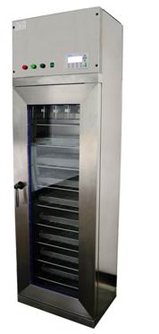 本医用干燥柜是医疗器械专用灭菌前的干燥设备,主要能满足医院的各类腔镜、湿化瓶、手术刀、止血钳、镊子、抽吸装置、麻醉导管、换药管、各种盘子、圆桶、侧压器等器械和物品在灭菌前的干燥,达到灭菌前的干燥指标。是医院手术室、供应室及消毒中心的必备。主要性能及特点本仪器采用先进的PLC软件程序和中文5.7”触摸屏人机界面。中文显示记忆和设定干燥时间和加热温度。中文显示容器内的进出口温度和容器内的实际温度。送风循环方式:强制热风送风循环(顶部出风,底部排风)。干燥温度:室温﹢0℃-﹢110℃连续可调,可根据被干燥器械和物品的种类和材质设定干燥温度,已达到佳干燥效果,并保证了干燥的安全性。干燥时间:1min-9999min连续可调,可进行高频率的干燥。专用器械物品支架和网架:设备备有专用器械用架、麻醉导管支架和湿化瓶搁架。导管专用固定架的内侧也可发出热风,方便了导管类和瓶类的内部干燥,更加保证了干燥的效果。安全装置:设备具有自我诊断功能(如:温度传感器异常、自动过升防止功能、温度上变差报警功能)、过升防止器、漏电断路器等,保证了设备使用的安全性。设备配有专用的接水盘。干燥器械时,干燥柜内多余水分可通过柜底流入接水盘,直接取出接水盘倒水。设备装有移动滑轮,可方便设备的移动和安装。主要技术指标仪器型号JK-DY300JK-DY400JK-DY500JK-DY600仪器尺寸(mm)600*650*1900720*650*2040700*750*2100800*850*2200干燥器内尺寸(mm)500*450*1350600*400*1700600*500*1700600*600*1700有效容量(L)300400500600风机电功率(W)300300300300300空气过滤的级别(um)5555干燥加热功率(W)3000400040004500设定温度范围(℃)0-1100-1100-1100-110设定干燥时间范围(min)0-99990-99990-99990-9999层数6段9段9段9段麻醉导管干燥架4个6个6个7个密封门单、双门钢化玻璃可是密封门内装材质SUS316不锈钢板外壳材质SUS304不锈钢拉丝板电源380VAC三相四线制或220VAC单相三线制产品质量约200kg