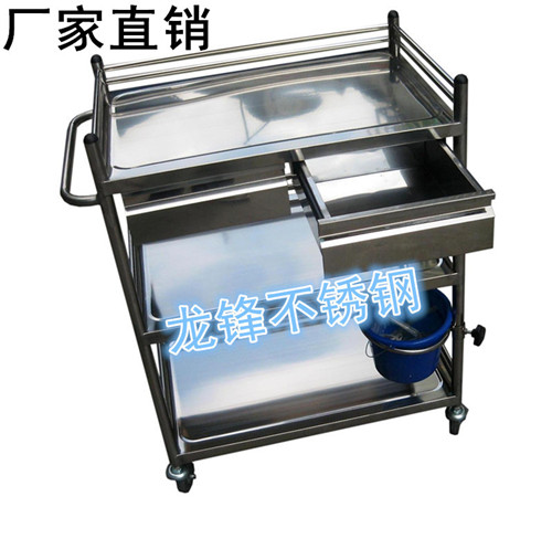 龙锋不锈钢三层两抽屉治疗车 彩塘不锈钢三层治疗车