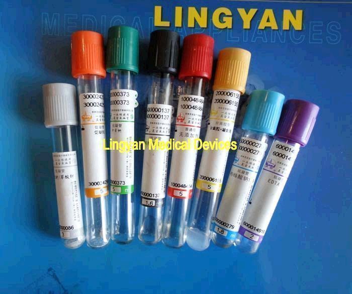 【医疗器械生产企业许可证】苏食药监械生产许2002-0051号【产品注册号】苏食药监械(准)字2011第2400423号【产品执行标准】YZB苏 0452-2011 【型号】普通管(无添加剂);抗凝管(EDTA.K2、EDTA.K3、枸橼酸钠1:4、枸橼酸钠1:9、肝素钠、肝素锂、氟化钠草酸钾);促凝管(凝血酶、促凝剂);分离胶管(分离胶、分离胶凝血酶、分离胶促凝剂)【采血量】1ml、1.28ml、1.6ml、1.8ml、2ml、2.4ml、2.5ml、2.7ml、3ml、3.2ml、3.5ml、3.6ml、4ml、4.5ml、5ml、5.5ml、6ml、6.5ml、7ml、7.5ml,普通管可为1ml~10ml 【主要结构、性能】 本产品主要采用以丁基胶为原材料制成的胶塞、玻璃或PET塑料制成的试管组成,采血管内保存一定的负压,利用负压原理,与采血针配套使用达到自动采血。【适用范围】本产品主要与采血针配套,供临床采集病人静脉血样用。【禁忌症、注意事项、警示及提示性说明】 1、管塞穿刺针刺入胶塞时应垂直正中刺入,请勿拔掉穿刺针的保护套; 2、在进行采血时,请勿拔动胶塞,以免失去真空; 3、本品是一次性使用,用后销毁; 4、采血管应贮存于无腐蚀性气体和通风良好、清洁的室内。【临床使用说明】 1、皮肤消毒后将采血针的静脉针刺入静脉; 2、见回血后,将静脉采血针的穿刺针刺穿采血管的胶塞,血液将自动流入试管内; 3、采血至标定容量后,先拔出静脉针,再拔出穿刺针。 4、手拿着采血管,让其上下轻轻地颠倒5-8次(普通管除外)。【在进行抽吸体积试验时,其充水充装方法如下】本方法采用软管式采血针,将静脉采血针的静脉针头插入水中,再将穿刺针头沿采血管胶塞正中心插入,待水采到公称容量的刻度线时,拔出穿刺针头。
