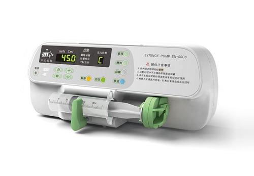 SN-50F6微量注射泵?国际水准的注射泵?SN-50F6微量注射泵更适配:注射器自动标定,适合所有品牌?SN-50F6微量注射泵更方便:“爪式可开启”机构,方便注射器安装?SN-50F6微量注射泵更持久:电池可供单个通道持续工作超过6小时?SN-50F6微量注射泵的性能参数(双通道)SN-50F6微量注射泵的注射器规格?10, 20, 30, 50mL注射器SN-50F6微量注射泵速率?0.1–1500 mLh 50 mL 注射器0.1–900 mLh 30 mL 注射器0.1–600 mLh 20 mL 注射器0.1–400 mLh 10 mL 注射器快速推注 1500 mLh 50 mL 注射器900 mLh 30 mL 注射器600 mLh 20 mL 注射器400 mLh 10 mL 注射器SN-50F6微量注射泵的注射精度注射精度≤ ±2%机械精度≤ ±1%累计总量?0.1–9999 mL(0.1–999.9mL,每级0.1mL)限制量 0.1–9999 mL(0.1–999.9mL,每级0.1mL)阻塞报警阀值 ’H’: 800±200 mmHg (106.7±26.7 kPa) or 1.09±0.27 kgfcm2’C’: 500±100 mmHg (66.7±13.3 kPa) or 0.68±0.13 kgfcm2’L’: 300±100 mmHg (40.7±13.3 kPa) or 0.41±0.13 kgfcm2电源 AC 100~220V±10%, 50~60Hz±1Hz内置电池:DC12V镍氢充电电池组;关机后充电12小时以上,可供单个通道工作6小时以上;可供两个通道同时工作4小时以上。(按照GB9706.27-2005标准指定的速率:5mLh)运行环境条件 温度:+5℃~ +40℃相对湿度:20%~80%运输储存条件 温度:-10℃~+55℃相对湿度:≤95%电击防护等级 I类CF型设备,内置电源,连续工作模式防水等级 IPX4重量 3.45kg(含夹座)SN-50F6微量注射泵的外形尺寸?354mm(宽)×190mm(高)×128mm(深)